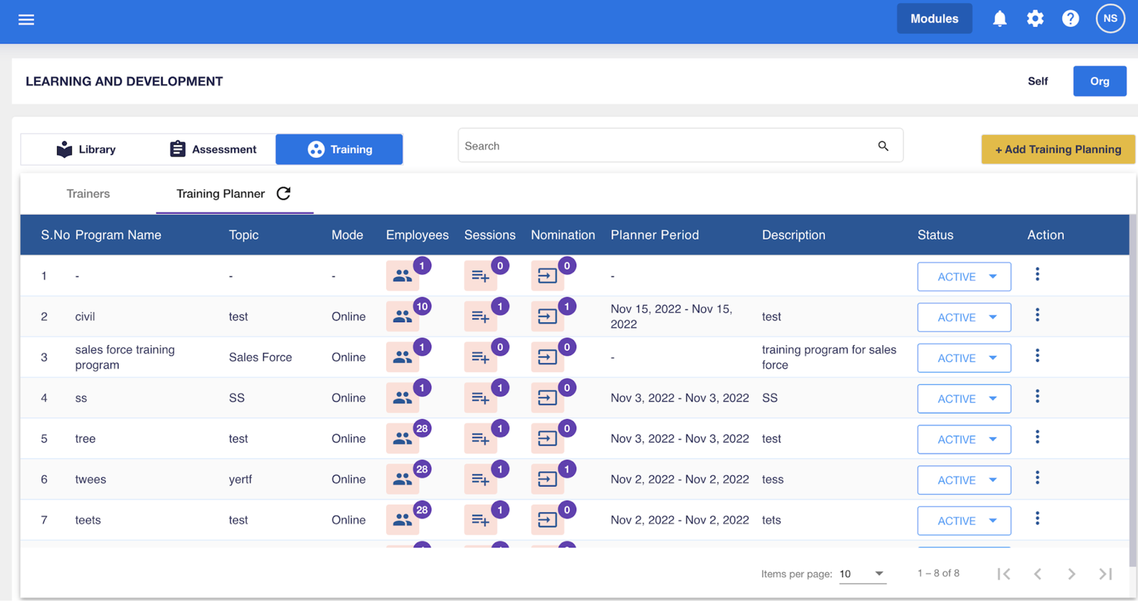 The Admin of the Client Organization creates and hosts customised learning modules in the library with ease. The modules can include links/videos/docs and can be assigned to employees or teams in seconds. Now, create training programs on the platform in a jiffy and attach highly customized assessment forms and feedback forms to the programmes. The platform helps leaders nominate employees to programmes and assign content to employees. The admin can access real time insights pertaining to learning progress of individuals, assessment results, feedback reports and overall learning programme effectiveness.